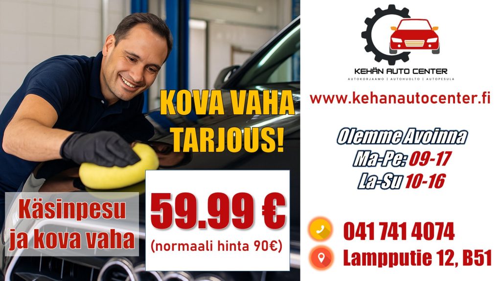 Kehän Auto Center Oy on täyden palvelun autohuolto ja autokorjaamo ja autopesula. Meiltä saat ammattitaitoista palvelua kaikissa auton huoltoon ja korjaamiseen liittyvissä asioissa. Koulutettu henkilökuntamme korjaa kaiken merkkiset autot nopeasti ja luotettavasti, joten voit lähteä meiltä tyytyväisenä ja auto huollettuna. Autokorjaamolle on helppo saapua myös muualta pääkaupunkiseudulta.
